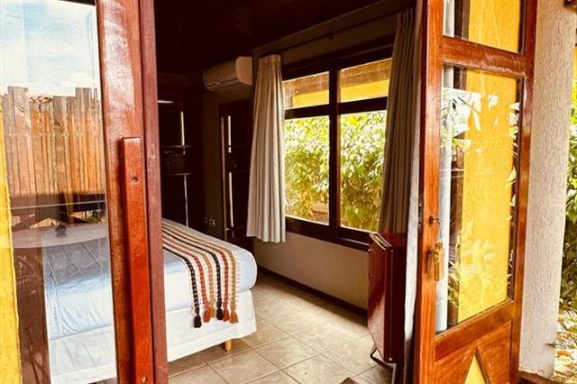 SUÍTE DE 1 AMBIENTE No térreo da pousada (sem vista mar). - Ambiente: cama queen size box, ar-condicionado split, TV 32', frigobar, cofre, banheiro com ducha quente e secador de cabelo.